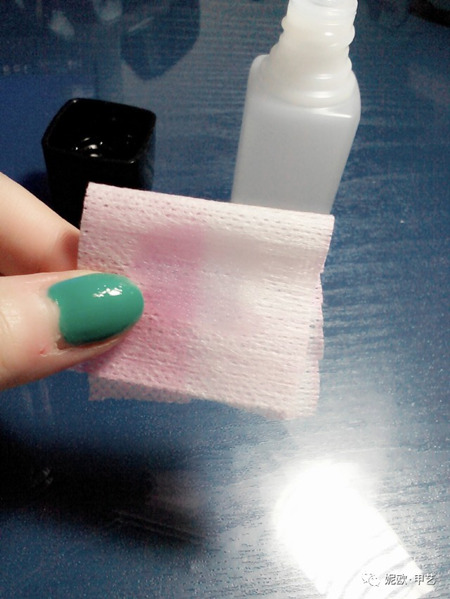 2、化妆棉浸泡在洗甲水中。