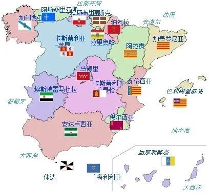 西班牙一级行政区划地图(未包含两个自治市)