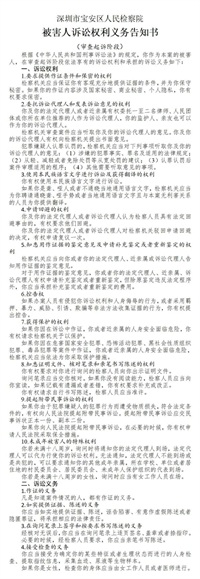 因本案被害人人数众多,根据《中华人民共和国刑事诉讼法》的有关规定,经本院联系,仍有部分被害人无法送达,现采取公告方式告知本案被害人的诉讼权利义务,详见《深圳市宝安区检察院被害人诉讼权利义务告知书》。