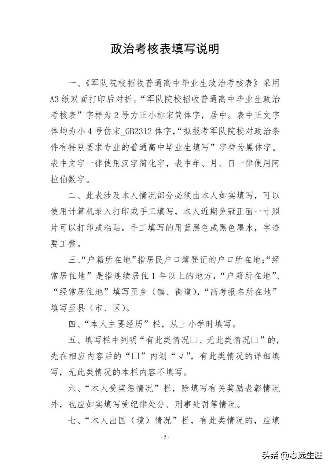 今年政治考核需在6月10日前填写提交,普通高级中学组织有报考军队院校意愿的考生填写政治考核表如下(可登陆广东省教育考试院门户网站下载打印),报送所在县(市、区,下同)招生办公室。