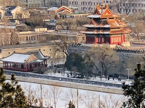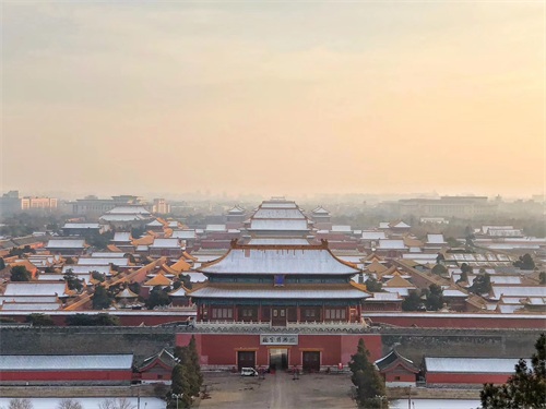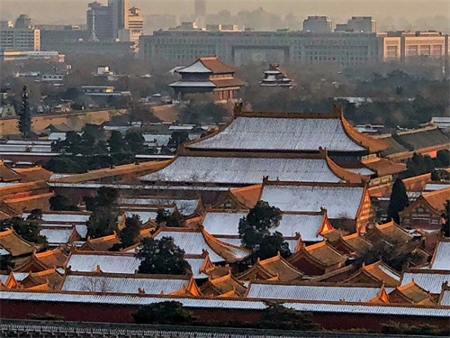 走出故宫的神武门,过马路便是景山。在景山的最高点万春亭往南俯瞰,紫禁城的巍峨殿宇和黄瓦飞檐,连绵成片;向西眺望,中南海、北海的水面波光粼粼;转身向北,中轴线上的钟鼓楼跃入眼帘,是看京城景色的绝佳胜地。