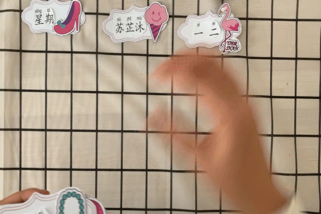 这项工作可以和孩子(孩子太小可以让孩子完成粘贴工作)一起完成,让孩子选择喜欢的图案,一次制作完成后,分期让孩子挑出喜欢的卡片贴于床头,衣柜上等光滑表面,宝宝容易看见能去除粘胶的位置(小编一次贴了三张,能熟悉指读后再去粘贴下一组字卡)