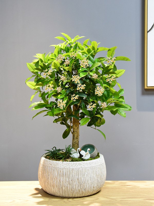 盛开的桂花摘下来可以泡茶、酿酒,做糕点。以桂花入食,也是一件风雅之事。南方的花友可以将桂花地栽,让它长成大树。北方的花友可以盆栽桂花树,冬季入室。再过段时间,就是桂花开放的时候了,要是你家的桂树现在还没有花苞,可以一个礼拜喷洒一次磷酸二氢钾溶液,直到花苞显色停肥。