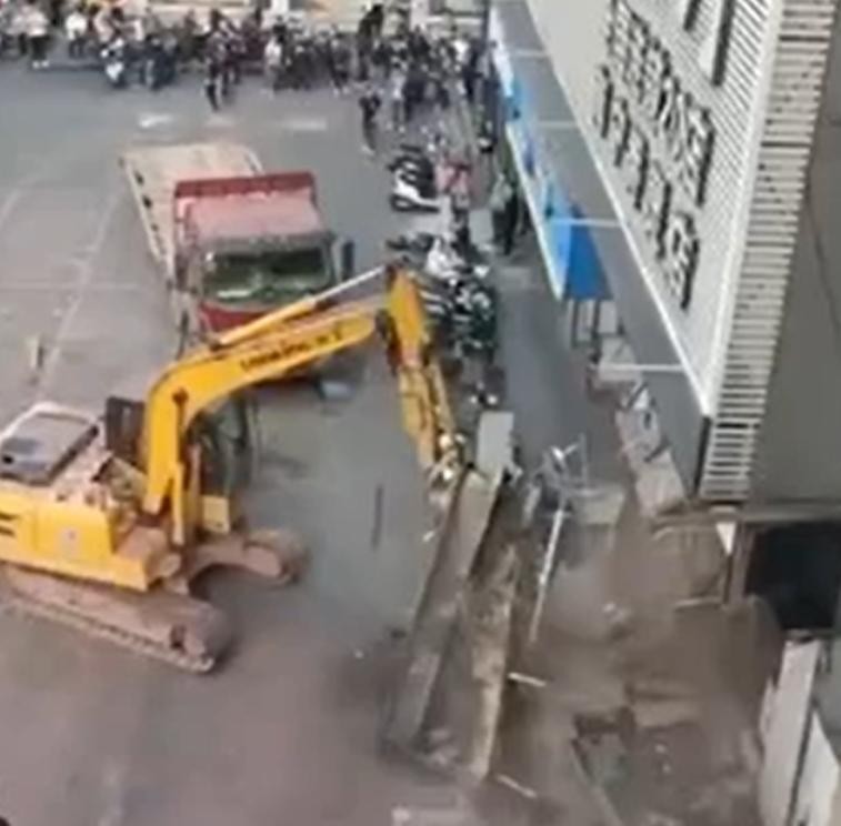 南宁佰迪乐KTV秀灵店因长期拖欠租金,被业主请挖掘机进行清场