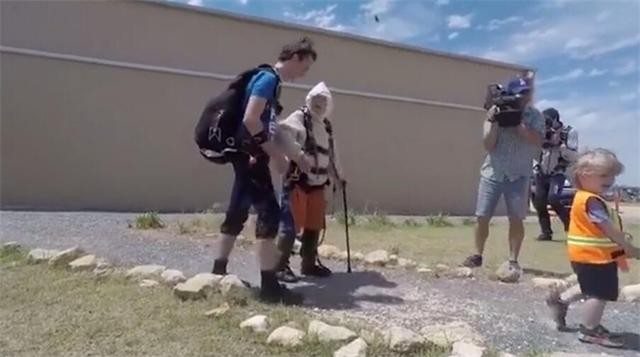 102岁奶奶玩跳伞过程图片一览 102岁奶奶玩跳伞原因令人动容
