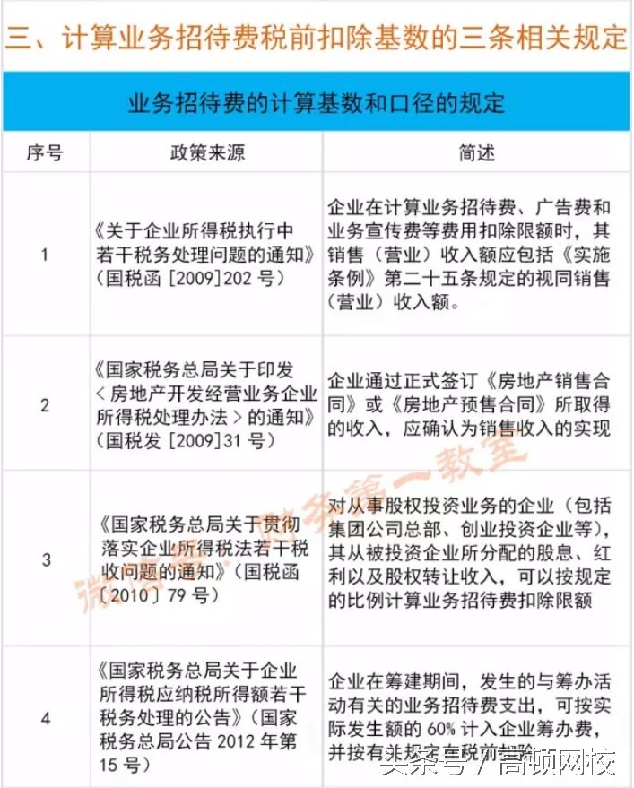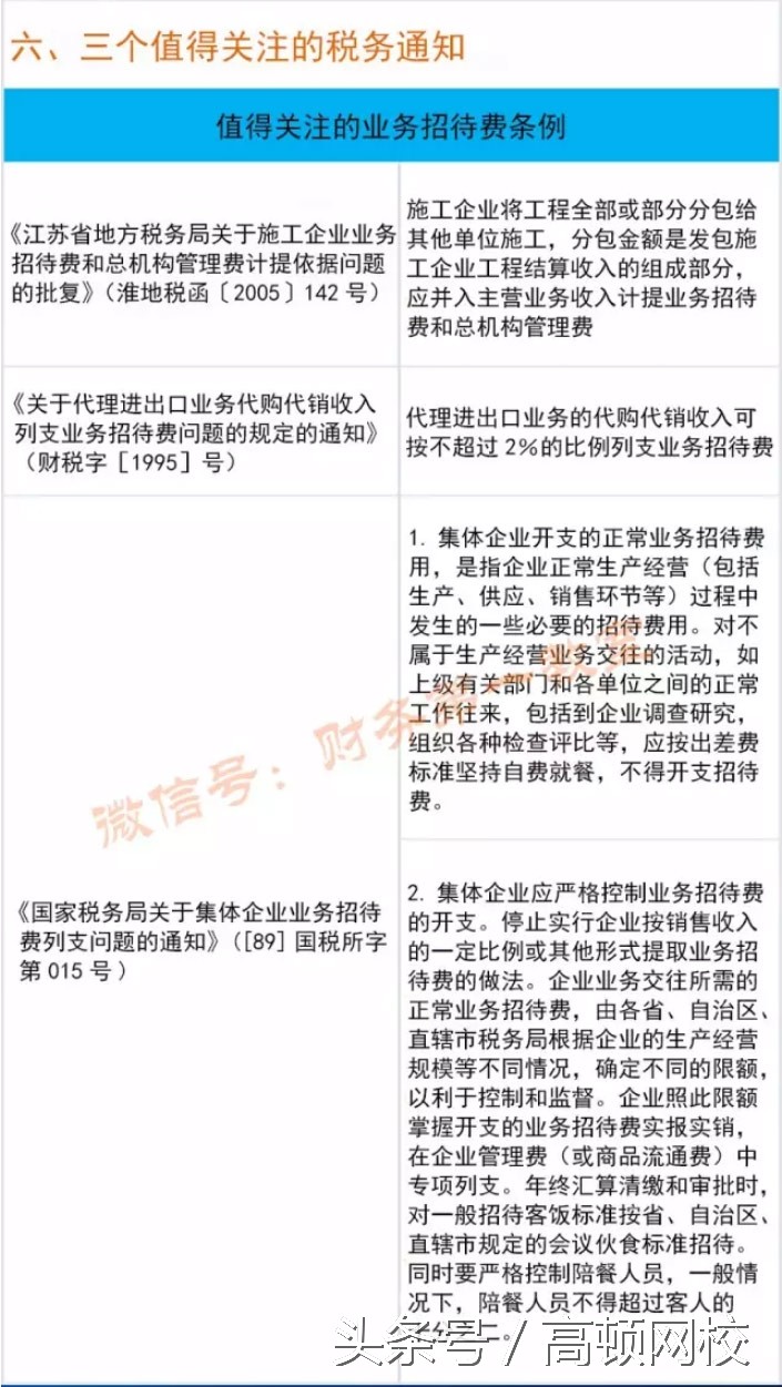 业务招待费是指企业为生产、经营业务的合理需要而支付的应酬费用。很多财务工作者在计算业务招待费时,都会遇到业务招待费的税前扣除和会计处理。高顿网校小编从财务第一教室搜集整理了六张表,让你秒懂“业务招待费”!