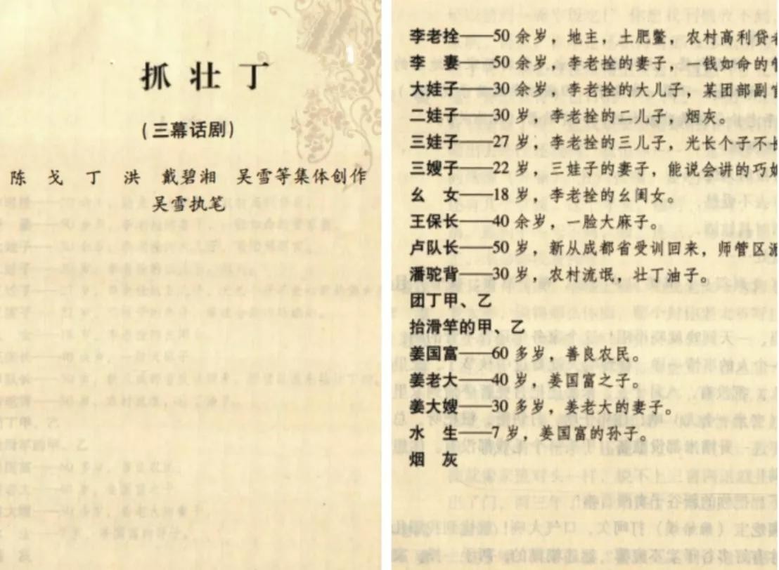 “九·一八”事变后,国民党政府实行兵役制下的四川农村。党棍官僚、地方保长、反动地主利用征召壮丁,营私舞弊、顶替买卖、贪污敲诈。亲眼目睹国民党腐败行径的闹剧后,陈戈以及丁洪、戴碧湘、吴雪共同创作了话剧剧本《抓壮丁》。