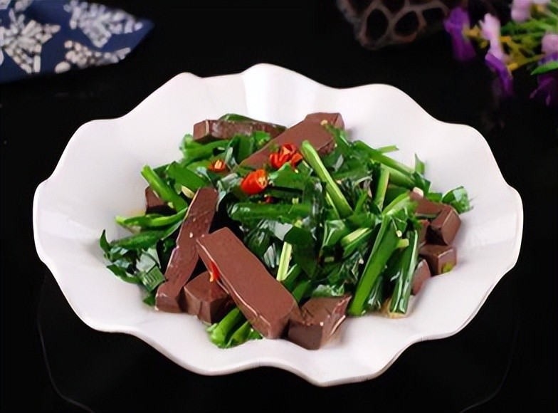 (2) 炒菜时火候不宜过大,以免过度烹煮影响口感,保持韭菜的嫩脆和鸭血的鲜嫩。