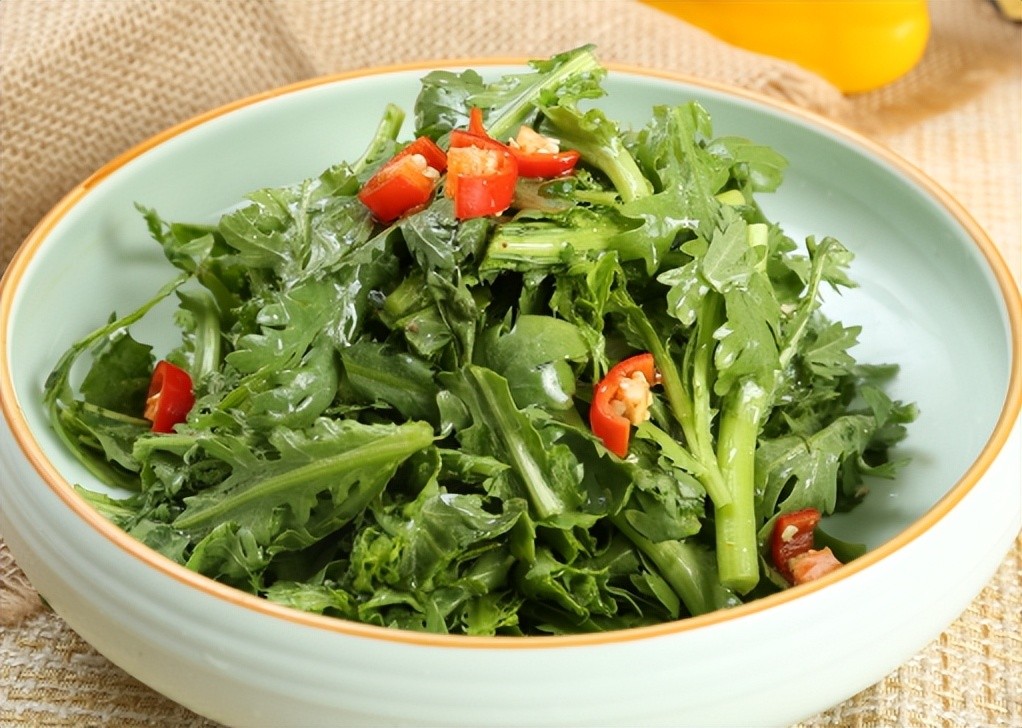 茼蒿是一种传统的时令蔬菜,富含维生素A、维生素C、膳食纤维等营养成分,有助于增强视力、促进肠道健康。常见的做法有茼蒿拌豆腐、茼蒿炒虾仁等。在烹饪时,要注意尽量保持茼蒿的嫩绿色,不要过度煮熟,以充分保留营养成分。