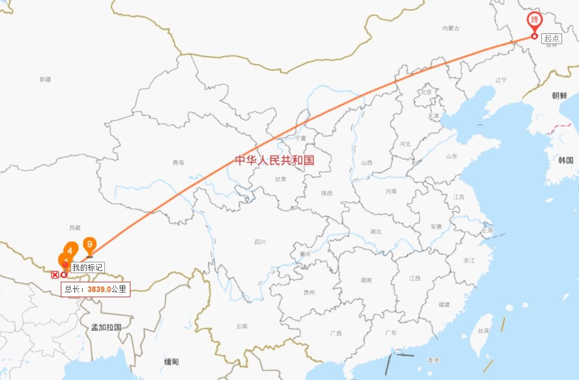 不过在地图上不应该是直线,应该是一条曲线。