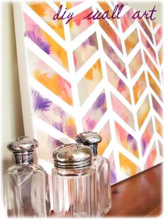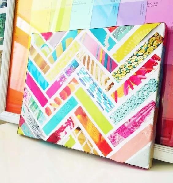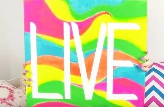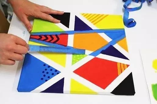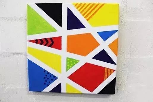 当然你还可以把你的作品,画得更有层次些。例如用胶带拼出文字,再涂上一层层背景,撕开胶带后,你会发现惊喜,一副艺术作品出现啦!