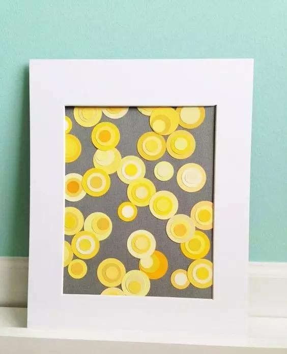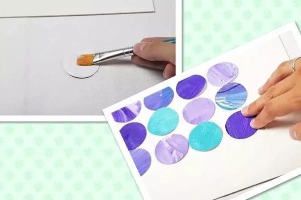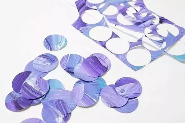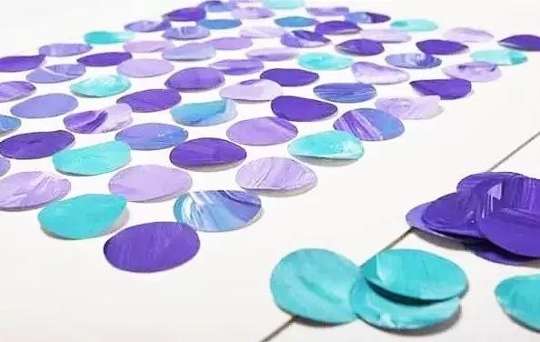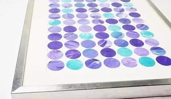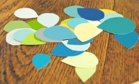 把涂上颜料的卡纸,剪成圆形或者水滴状,按矩阵规律地排布贴起来,搞定!