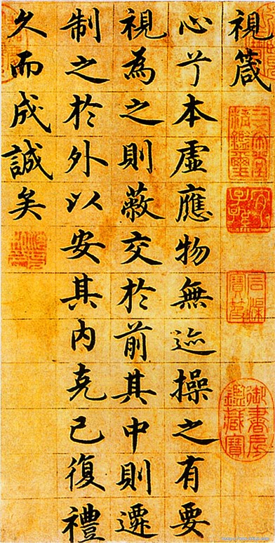 视箴:心兮本虚,应物无迹,操之有要,视为之则。蔽交于前,其中则迁。制之于外,以安其内。克己复礼,久而诚矣。
