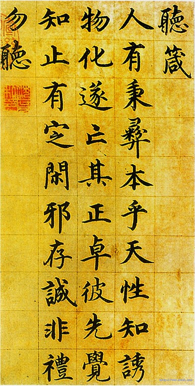 听箴:人有秉彝,本子天性,知诱物化,遂亡其正,卓彼先觉,知止有定,闲邪存诚,非礼勿听。
