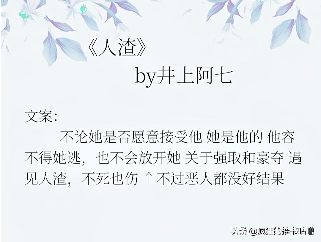 从开始看小说到现在,强取豪夺文是看的最多的,这类男主为了女主各种不择手段,虽然被虐的也很惨,但比起女主和男二真的还是不够啊,当然看这类小说,还是不要带三观比较好,不然会被雷到。