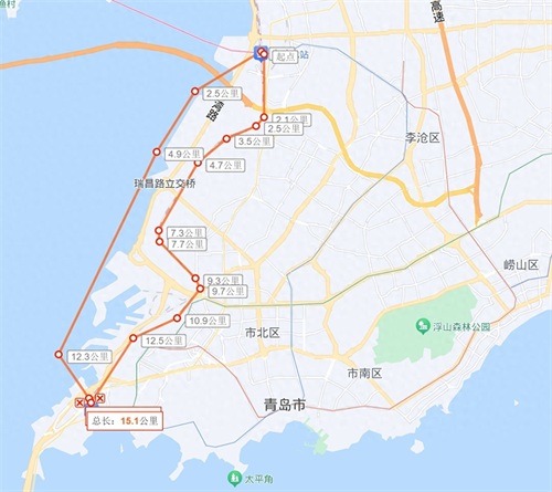 从青岛北站到青岛站的海底隧道大约有15公里,与青岛第二海底隧道的长度相当,
