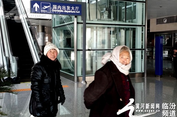 1月25日下午,临汾机场周边群众前来观看大飞机