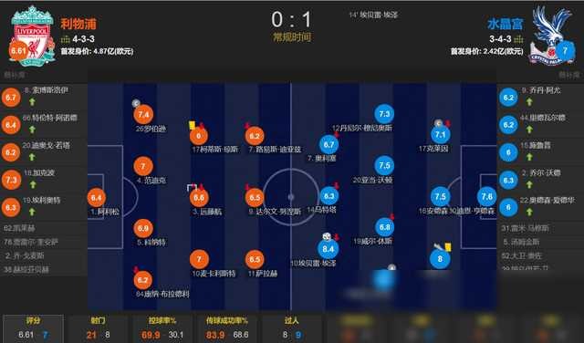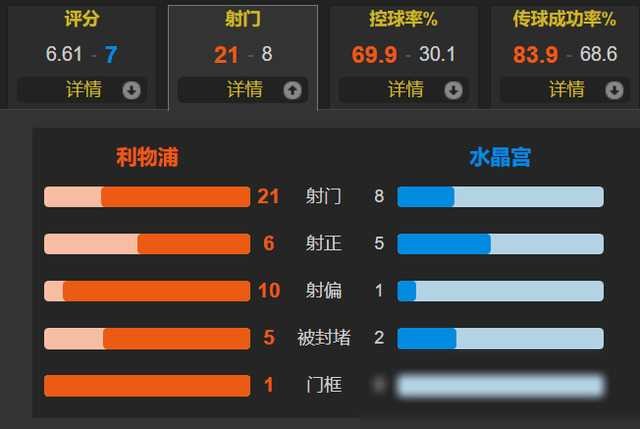 尽管利物浦在整场比赛中占据了控球优势,射门次数也远多于对手,但真正有威胁的进攻却寥寥无几。相比之下,水晶宫的进攻效率却出奇地高,他们凭借有限的射门机会成功打入一球,赢得了宝贵的三分。