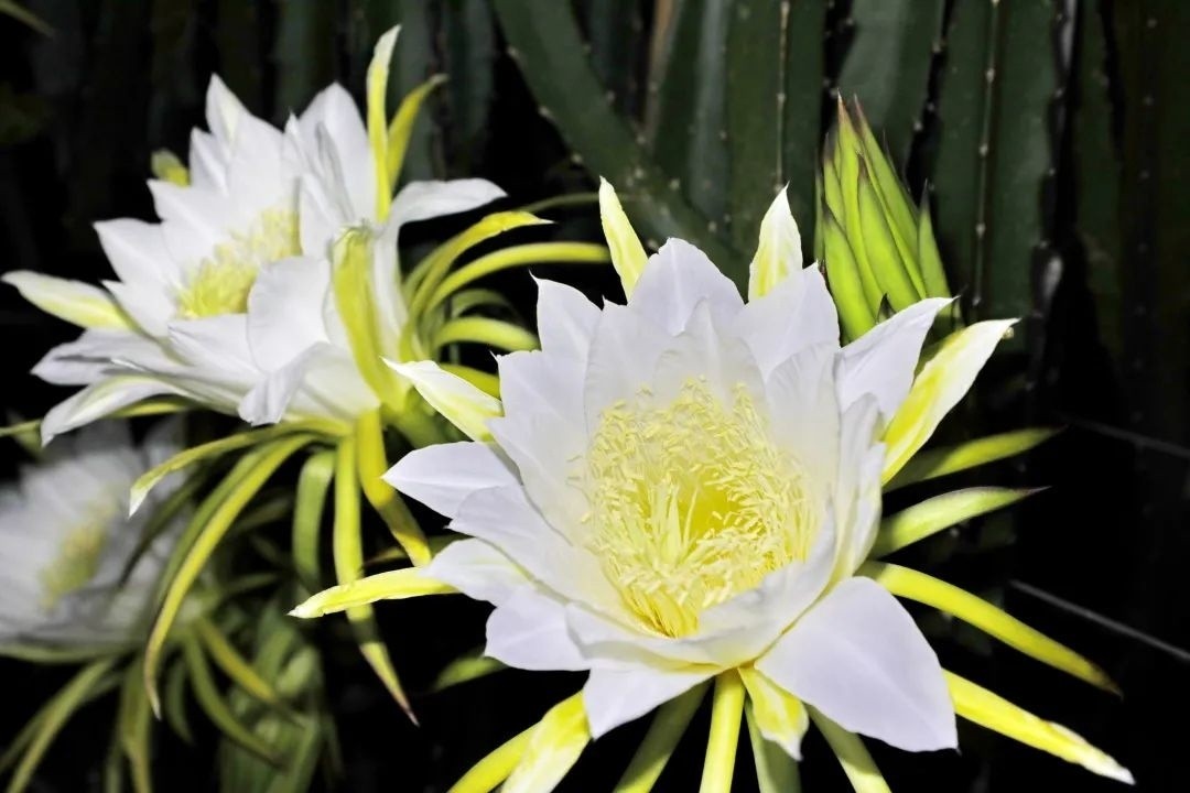 眼下在金山区,就有大片的火龙果花,趁着夜色朵朵绽放、美不胜收。