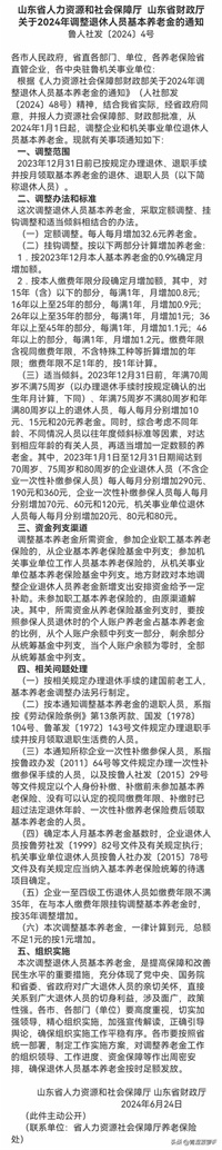 2024年6月25日,山东省2024年养老金调整方案正式官宣,有关详情请看本文下面截图。