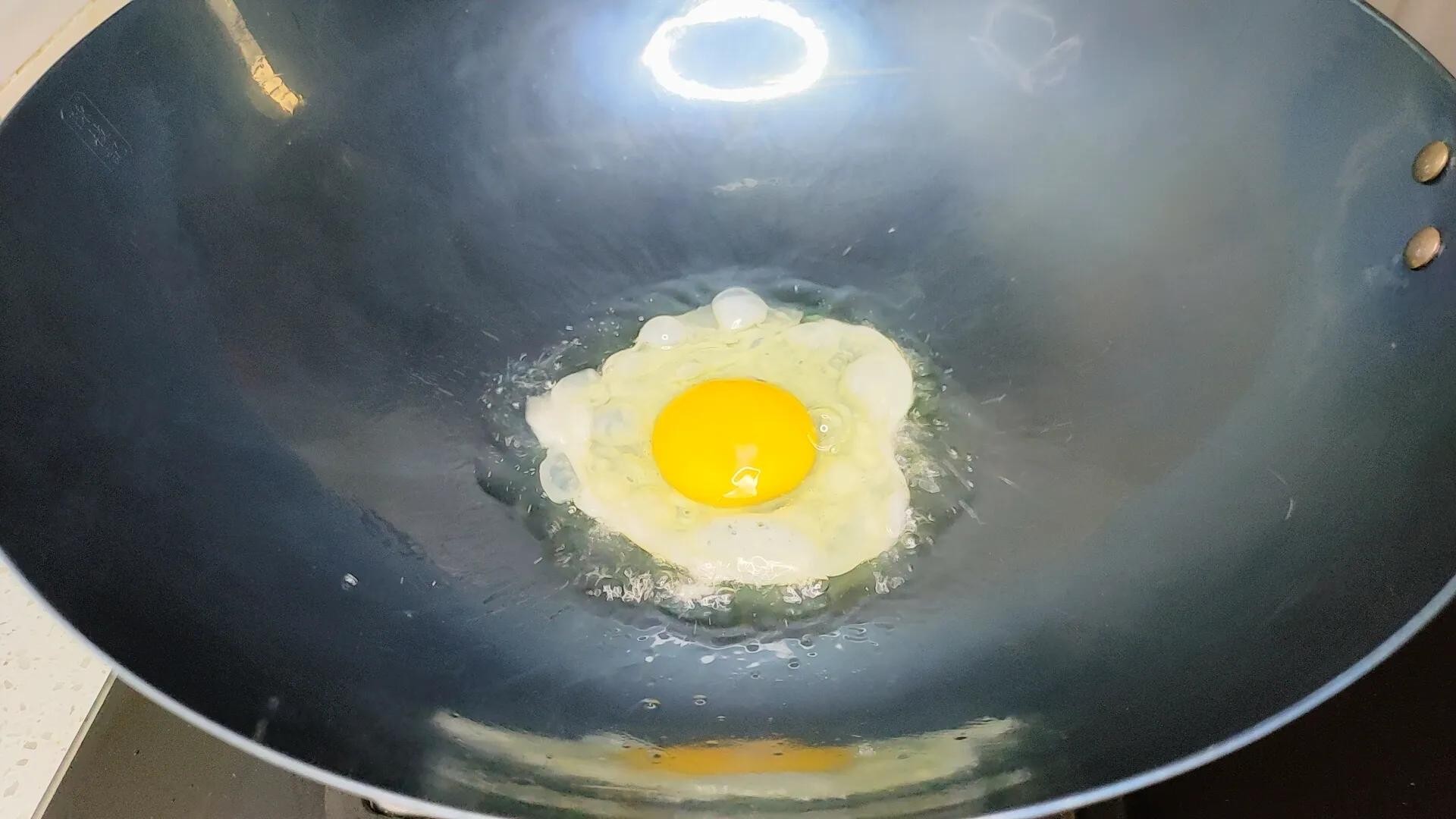 清洗干净之后,锅烧热加入一点食用油,在往里面加入一个鸡蛋试一试,然后在轻轻的转动一下锅,使鸡蛋受热均匀,我们在使用铁锅的时候,大家一定要先把锅烧热在加入食用油,这叫热锅凉油,这样无论是炒肉丝还是煎鸡蛋都不会粘锅,效果也是出奇的好。大家来看一下,现在煎的这个鸡蛋非常完整,一点也不粘锅。