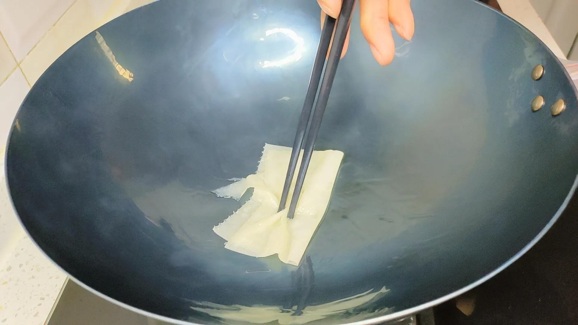 擦完第一遍之后在简单的清洗一下,锅烧热之后在加入一点食用油,在放入一张纸巾,使用筷子转着圈在锅身慢慢擦,让每一处都接触到油,按照这样方法开出来的锅无论是煎豆腐还是煎鱼都不会粘锅,大概擦两分钟左右,这个锅就已经开好了。