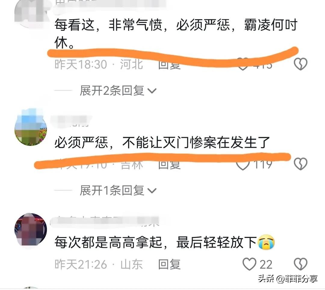 网友评论:必须严惩,不能让灭门惨案在发生了。每看这,非常气愤,必须严惩,霸凌何吋休。