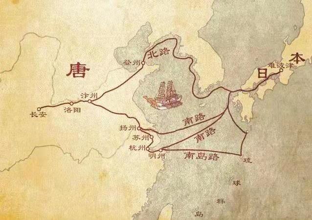 公元733年(圣武天皇天平五年,唐开元二十一年)4月,圣武天皇派遣的遣唐使从九州南下,绕过日本南方诸岛,沿着西北方向横跨东海,在长江口登陆后沿运河北上。沿途上遣唐使受到了热烈欢迎,并被专人护送到长安,进宫拜见唐明皇。