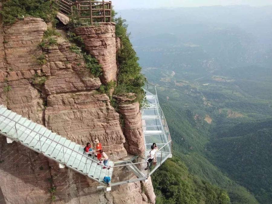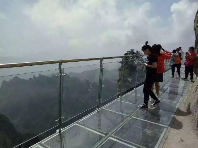 站在千米高的玻璃上,整个人仿佛悬空而立,透过玻璃往下望去,不仅山间美景一览无余,还有一种紧张刺激的快感。