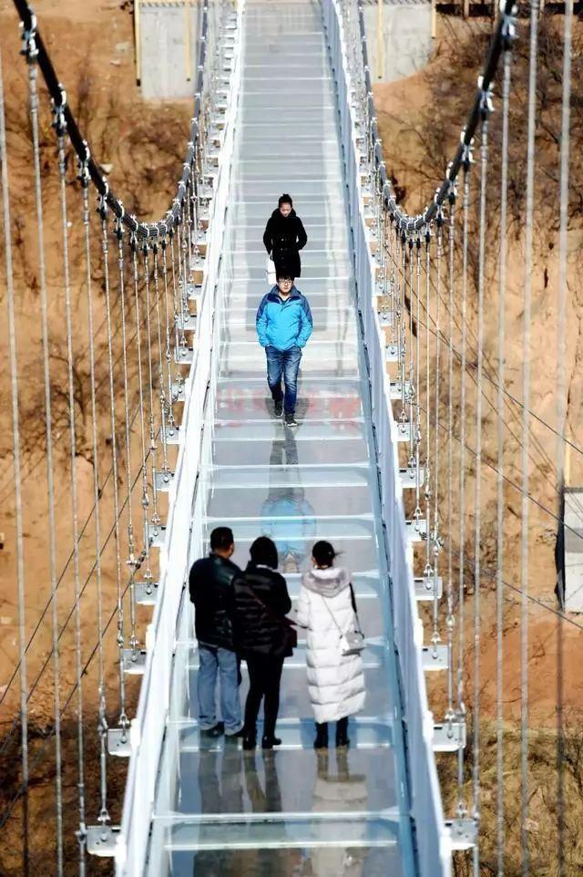 想象一下,你走在一座全透明的栈道上,依附于山峰悬崖峭壁之巅,脚下是仙境般的美景。游人行走在栈道上,如入云端,像在空中行走一样。