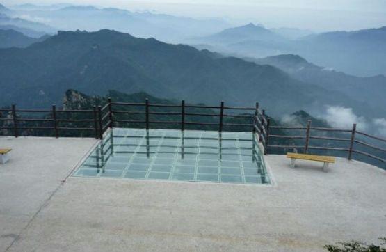 在老君山舍身崖上有一个玻璃观景平台,站在突出一块的玻璃平台上,有种随时可以凌空飞起的感觉。