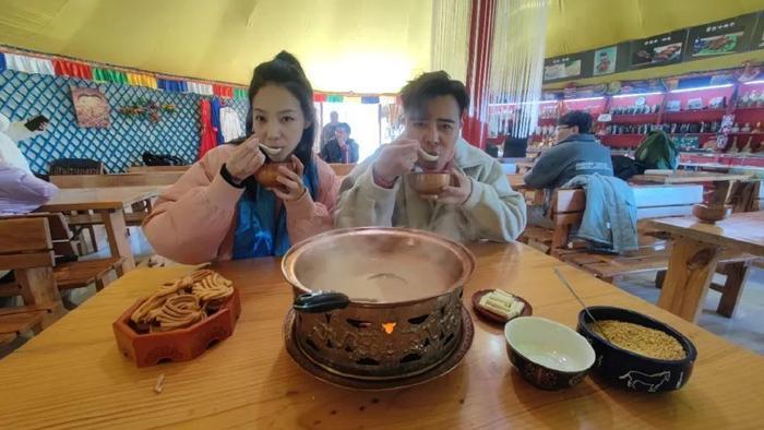 蒙古小伙宝音看到蒙古大营,瞬间心动了!在蒙古包里,听着蒙古族小哥悠扬的马头琴声,仿佛回到了大草原,所有烦恼都抛之脑后。再来一碗特色蒙古奶茶,配上炒米、奶豆腐、牛肉干、馓子,咸香可口,喝一口温暖了整个身心。