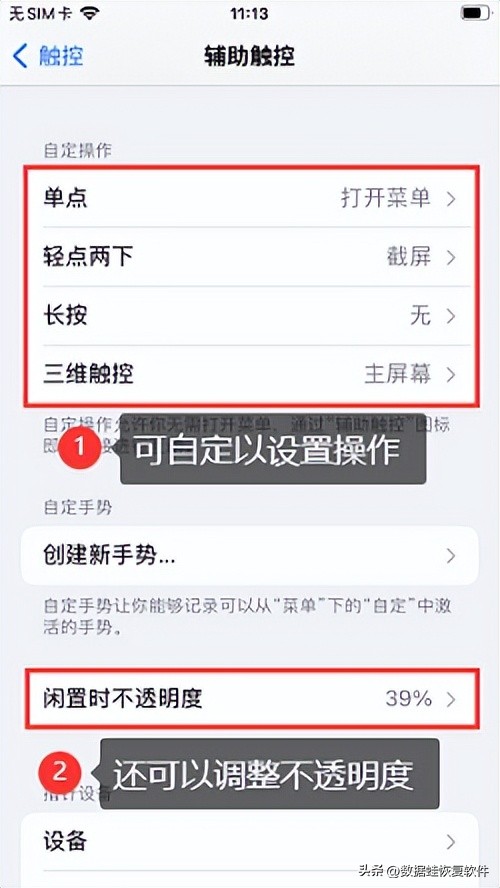 如果您认为圆点太过醒目,您可以在【辅助触控】中将其透明度调低。同样,您也可以通过改变圆点的大小来适应自己的屏幕。