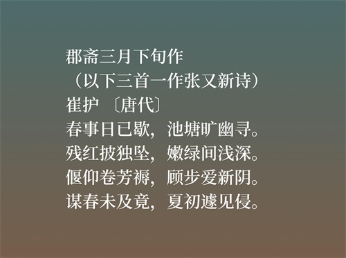 唐末诗人崔护,他这五首诗均是名垂青史之作,意境唯美,值得细品