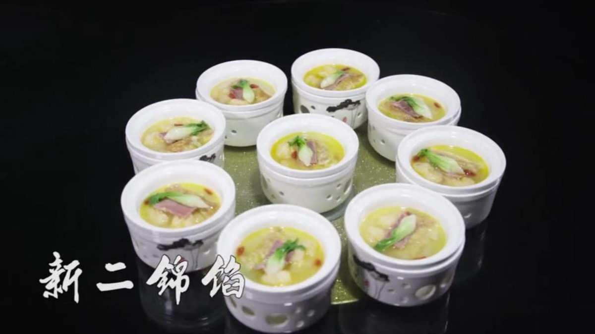 新二锦陷是旧二锦陷改良而成,是以南湖蟹肉、河虾、白花鲢鱼、香菇、火腿等为主材,辅以冬笋、白糖、绍酒等制作而成。