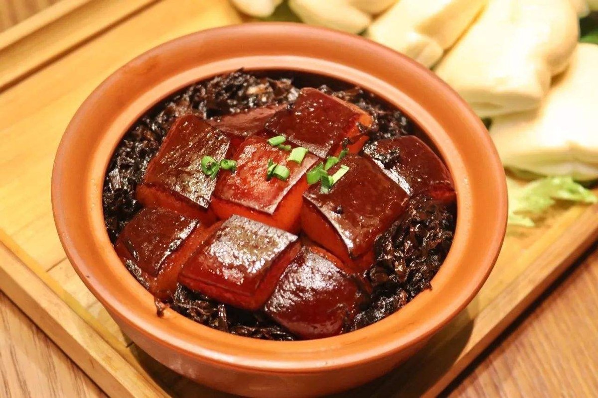 是以猪肉、梅干菜为主材,辅以白砂糖、酱油、黄酒等辅材制作而成。
