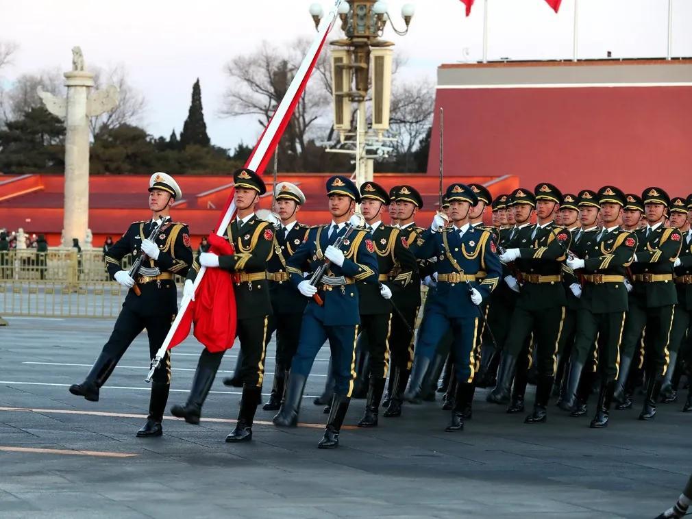 2018年1月1日起,天安门国旗升旗仪式,由武警部队交付给中国人民解放军三军仪仗队担任,这也是三军仪仗队首次担任天安门广场升旗仪式。与此同时,相应增加阵容,编设部分新动作,创作号角音乐,充分展示新时代强国强军风采。
