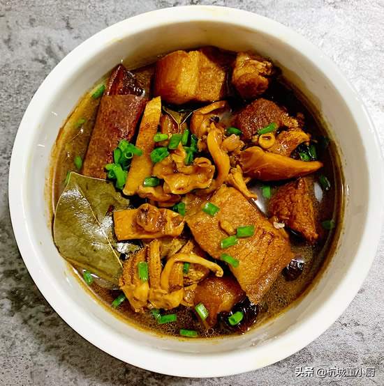 好吃的墨鱼干烧肉就做好了,闻起来非常香,肉块肥而不腻,墨鱼干吸饱了汤汁的味道,更加鲜美。浓浓的汤汁拌饭更是一绝,一块红烧肉、三块墨鱼干,再加上两勺汤汁,能吃下去满满一碗饭。喜欢就来试试吧!