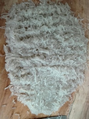 3。粉条或粉皮剁碎(家里有粉条就没去买粉皮,粉皮是鲜粉皮,我们这粉皮一块五一张,三张,四块五)