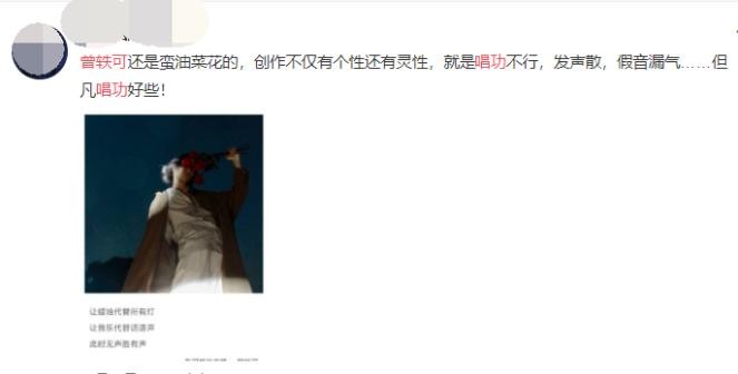 其实连曾轶可自己都承认唱歌跑调,所以她的唱功问题可以说是心照不宣的事实。此外,曾轶可的创作风格也是一成不变。每首歌的风格都极其类似,听多了就会发现“哎,怎么调都一样啊?”