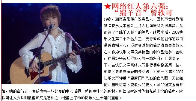 那么曾轶可当初是如何出现在大家视野中呢?大家对于曾轶可的印象都是起源于那个夏天——2009年的《快乐女声》。