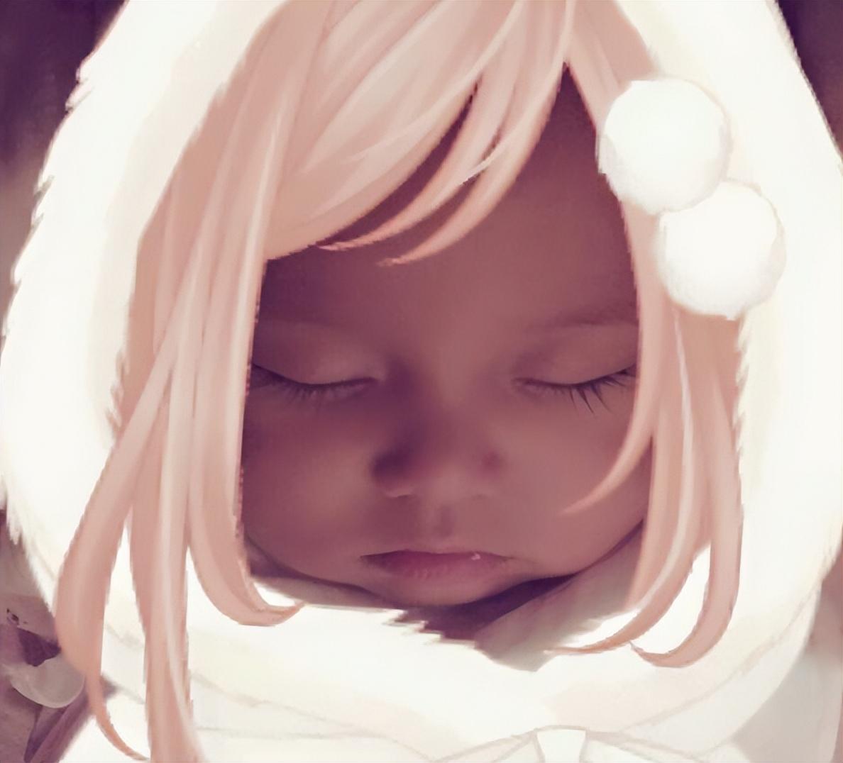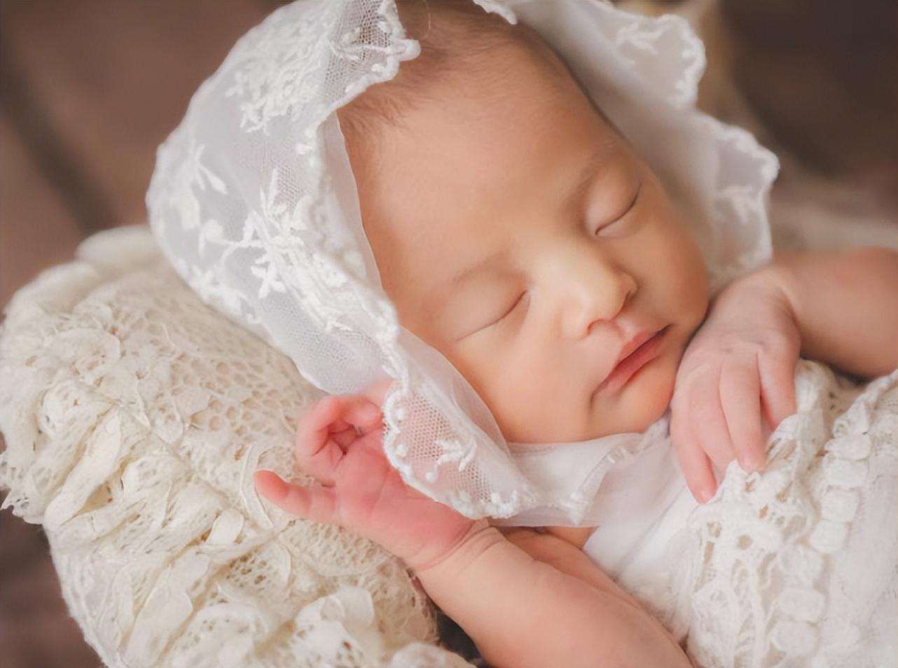 照片中,小公主戴着白纱帽,正在酣睡中的她皮肤白皙,嘴巴鼻子看起来都像爸爸,十分漂亮。而仔细看小公主的右手好像是摆了一个OK手势,萌态十足。