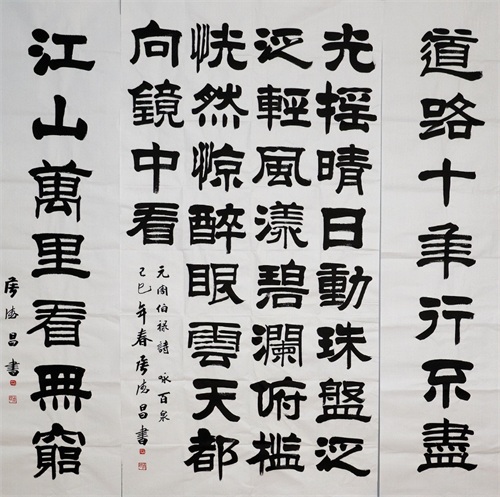 作为工艺美术家、国画家、书法家的侯德昌先生取得的累累硕果令人注目,但他不矜才傲物,不故做高深,行云卷舒,耕耘不止。他在三年内完成《侯德昌隶书集》、《侯德昌草篆集》、《侯德昌书画集》三部书。真可谓“艺无止境闯画坛,书画同辉又同源,德才齐昌使人赞,累累硕果天地宽。”