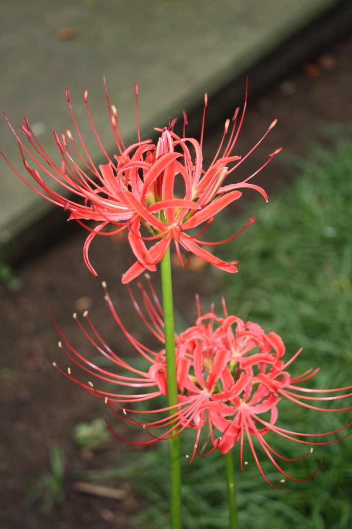 彼岸花是石蒜科的球根植物。这种花特别的有意思,一生中长叶的时候不开花,开花的时候叶子全部凋落。