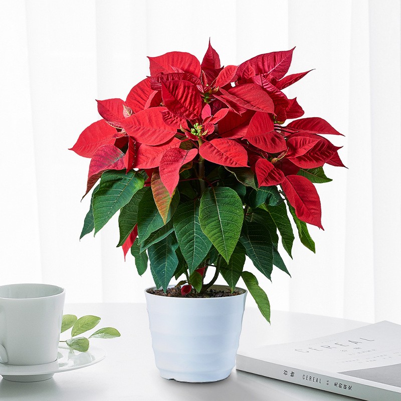 而一品红正是这样一款象征着吉祥如意的年宵盆栽。但是一品红全株有毒,白色的汁液会引起皮肤红肿,发热,严重刺激的感觉。