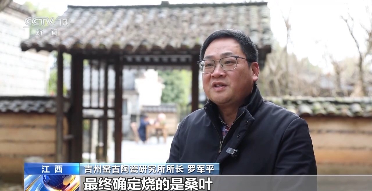 吉州窑古陶瓷研究所所长 罗军平:收集了30多种树叶进行对比复烧,不断尝试不同的烧成温度、装窑方法,连烧窑的木材我们也都试烧了十几种,最终确定烧的是桑叶。