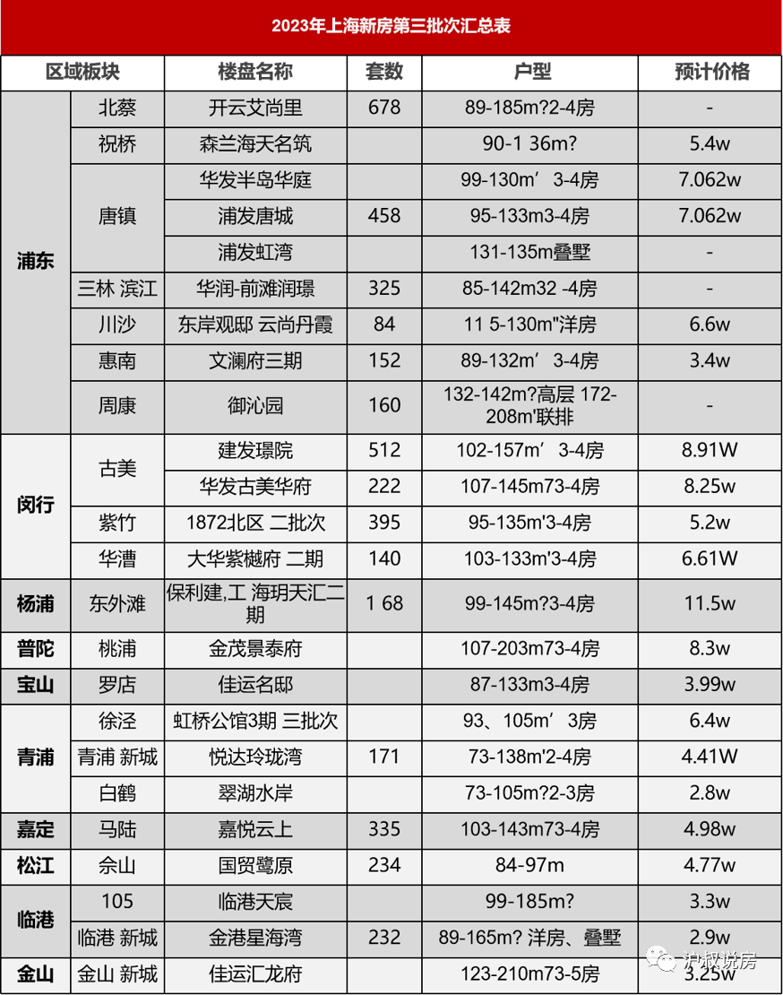 上海2023年第三批次新房公布时间表 上海2023年第三批次新房公布时间是多少