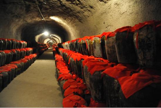 首先,第一年经发酵酿造出黄酒,在室内进行储存。