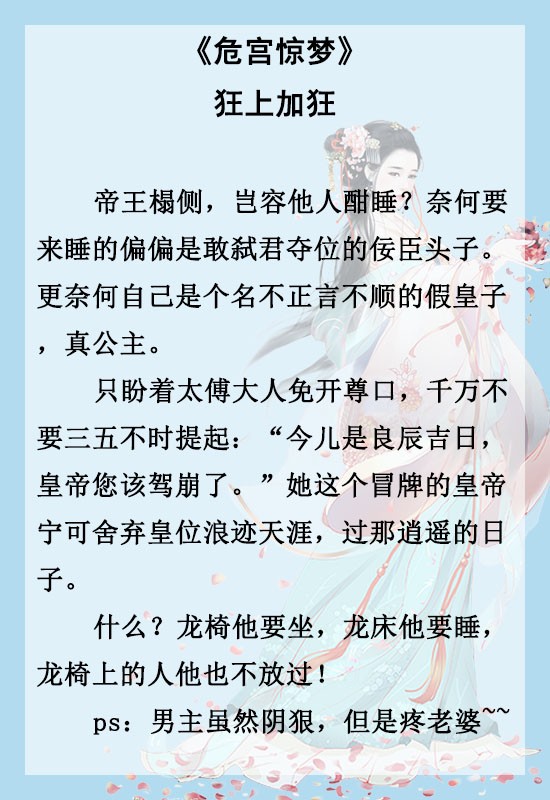 《长史很倒霉》《多情应笑我》《朕甚是心累》《危宫惊梦》《穿成权谋文里的加戏女配》