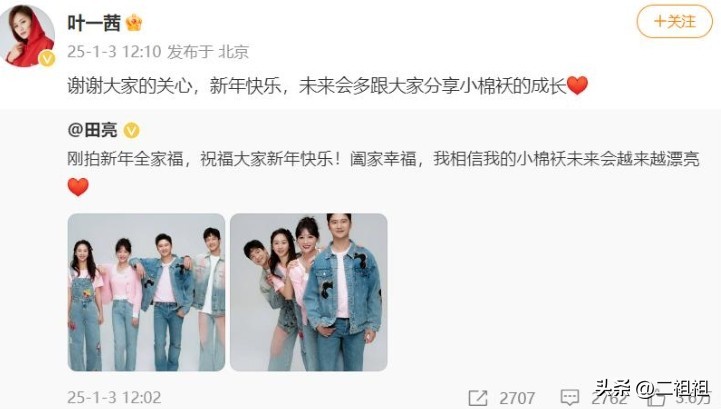 而这次的“被网友提醒才去治疗女儿的下巴后缩”事件,叶一茜和田亮似乎也丝毫没有意识到自己的不妥,在回应完已经开始给女儿治疗之后,直接甩出了一家四口的全家福,似乎在说:我们一家很好,不劳大家费心!